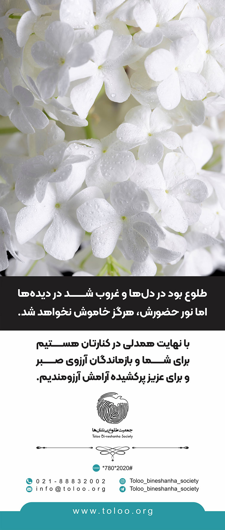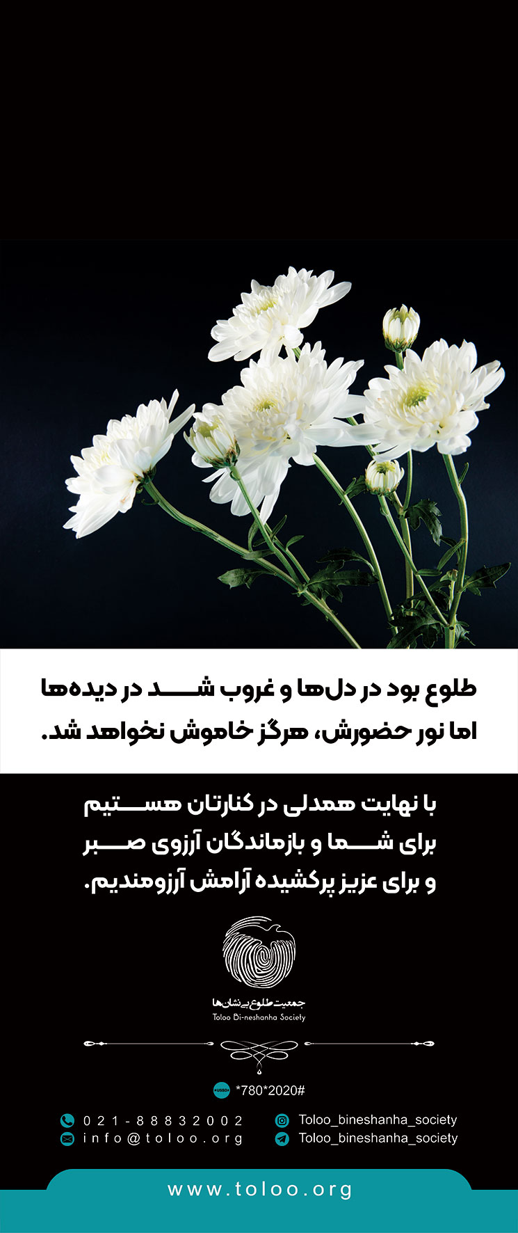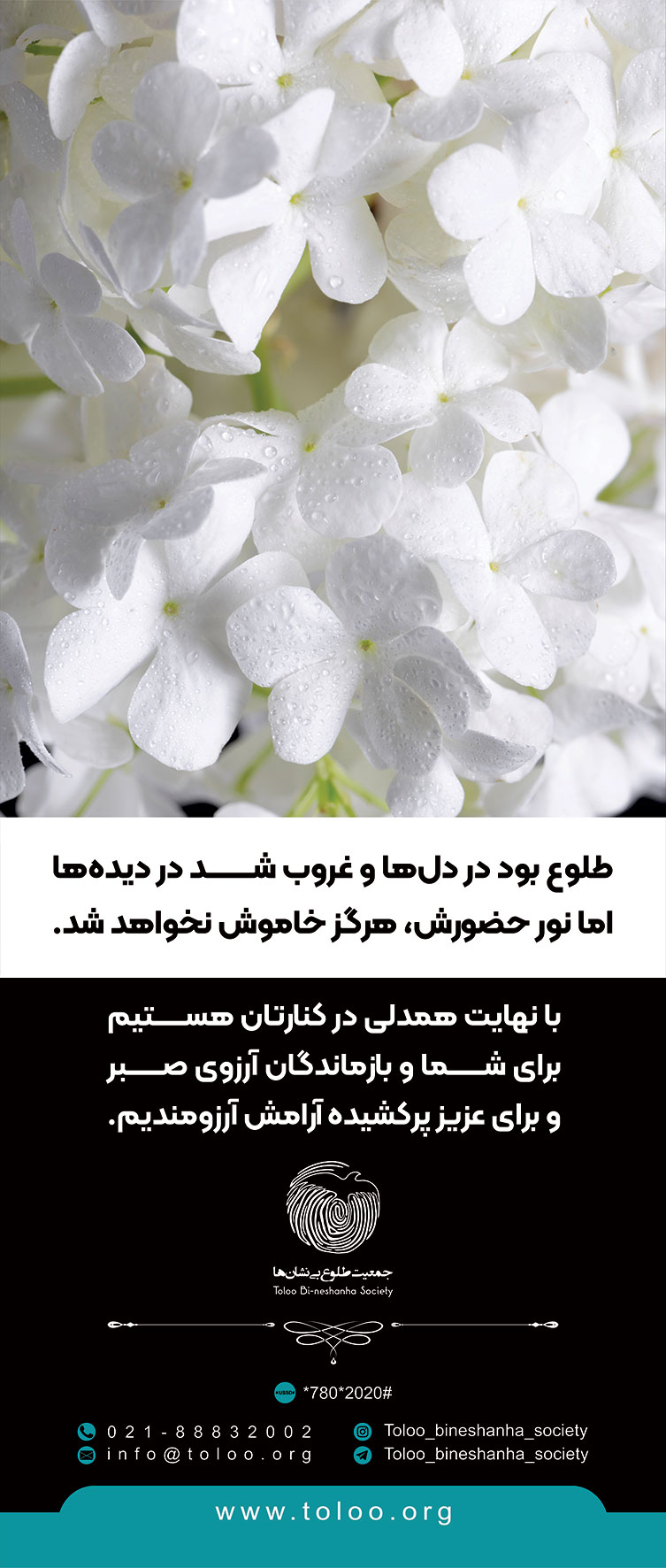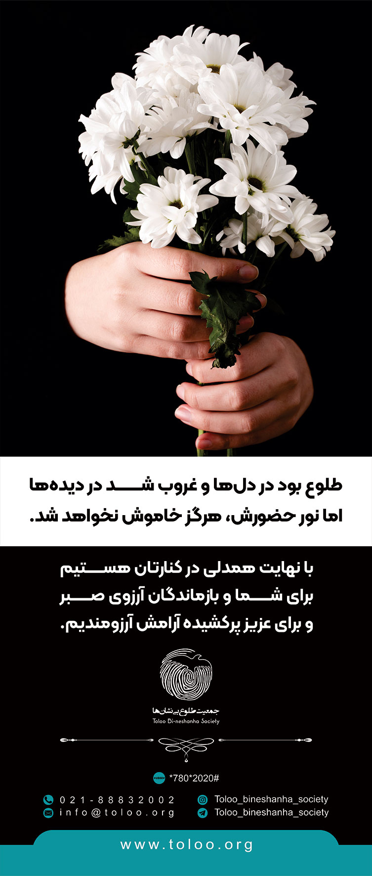 جهت سفارش استندهاس تسلیت جمعیت طلوع بینشانها با شماره 09127941430 در تماس باشید.